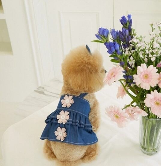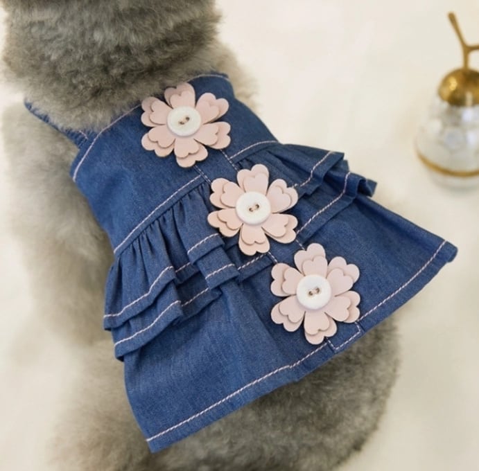 ふつうのデニムキャミワンピでなく、ボタン周りがお花になっているのでインパクト大♡