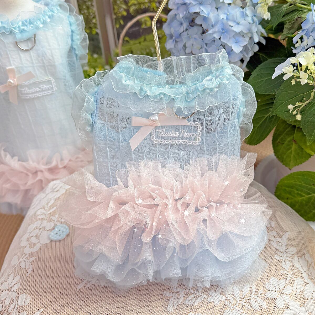 パステルブルーとピンクが涼しげでかわいいのでお出かけや撮影にぴったり♪