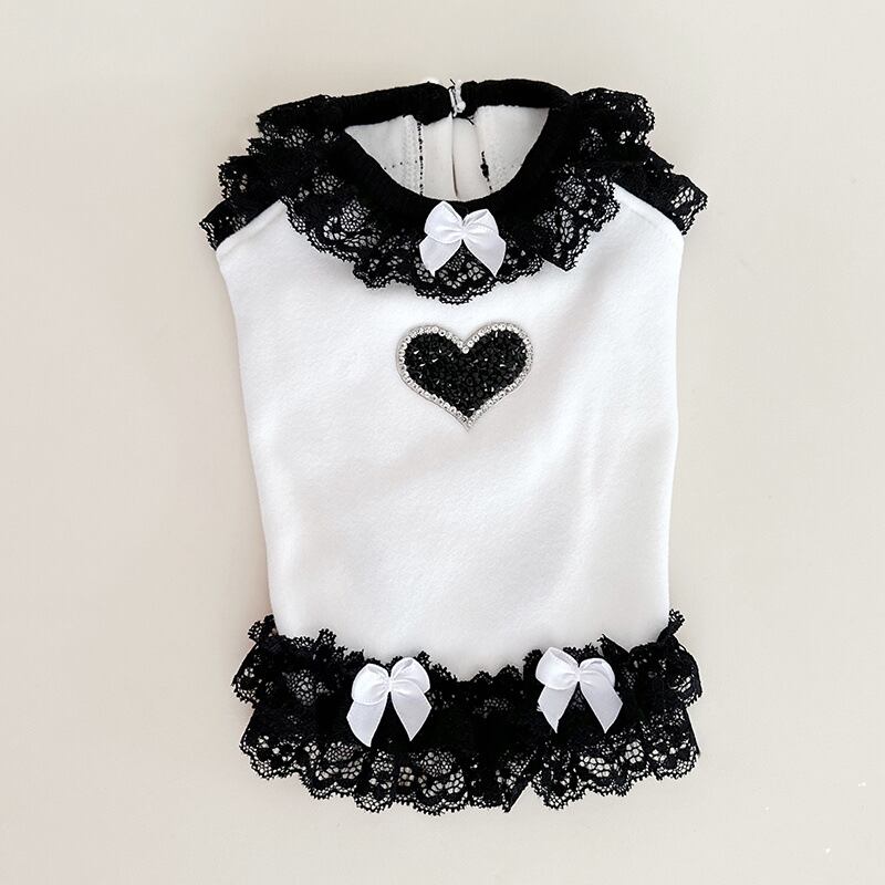 しっかりとした生地、作りに加え、フリルとリボン、ハートのキラキラがあしらわれた豪華なトップスです♡