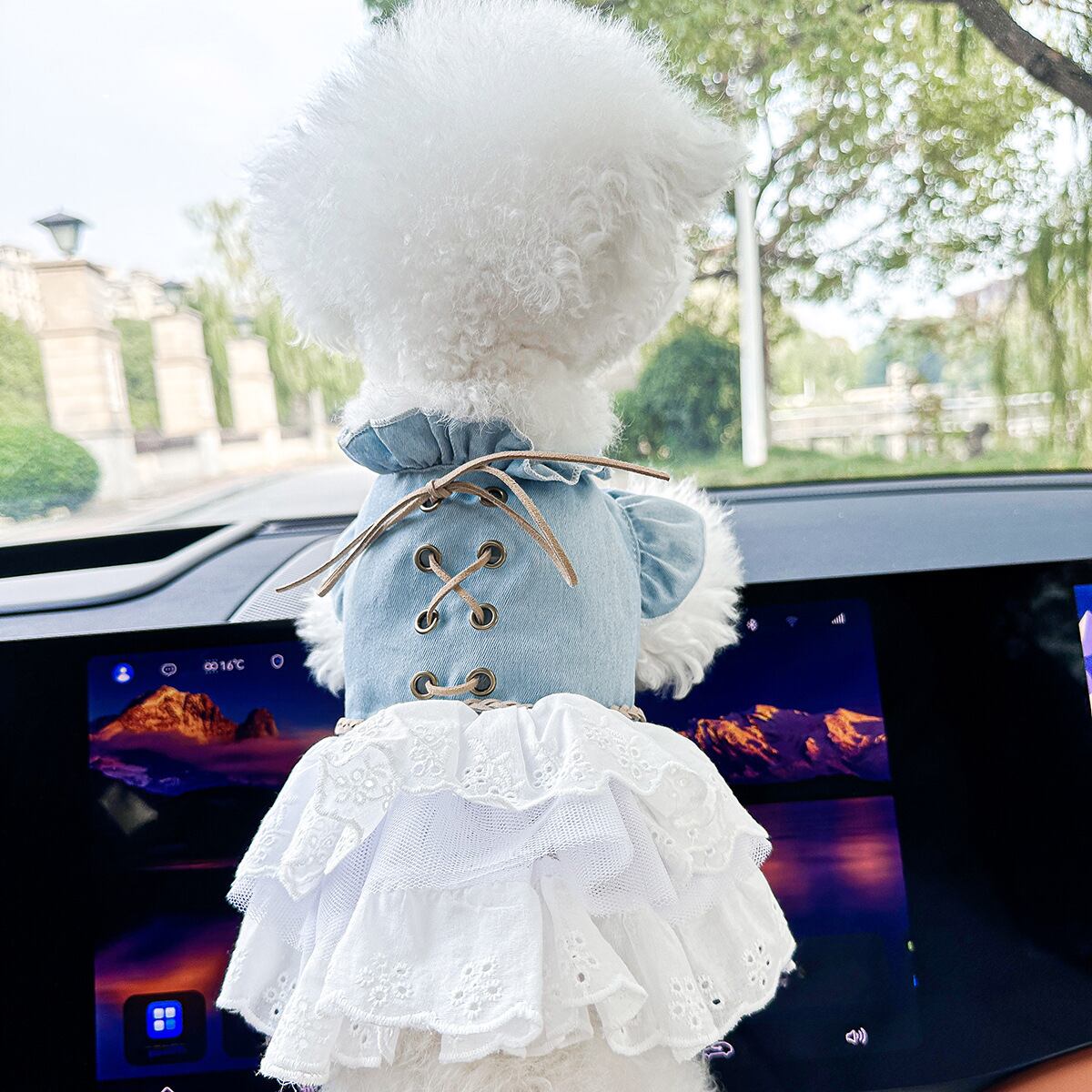 薄い水色デニムにレースアップがかわいいワンピースが入荷しました♪
