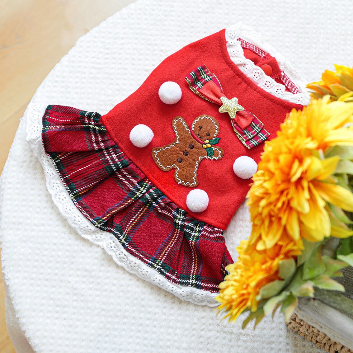 クリスマスらしい色合いとチェックのスカート、ポップなジンジャーマンと雪をイメージした華やかなアイテム♡