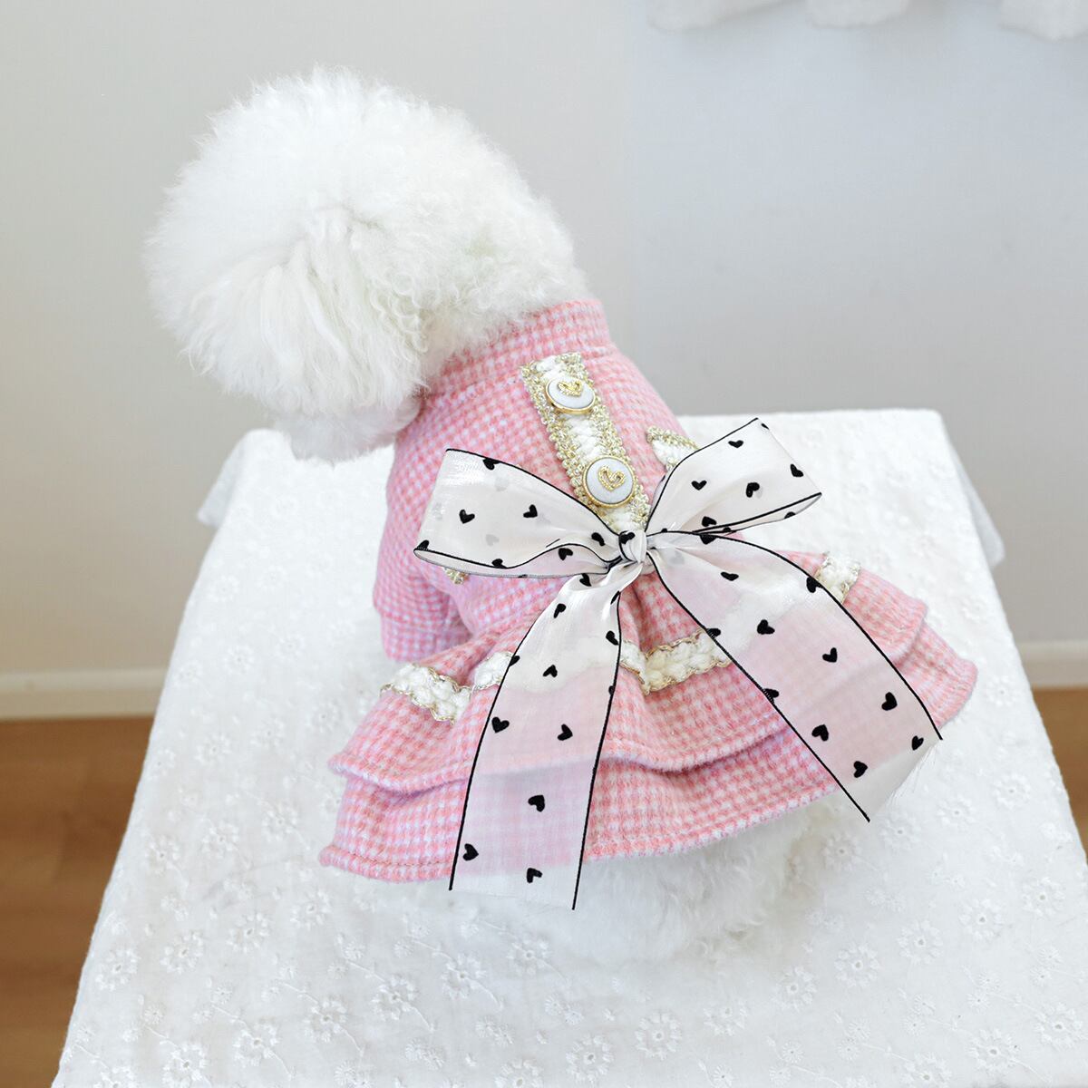 ハートボタンピンクワンピース
