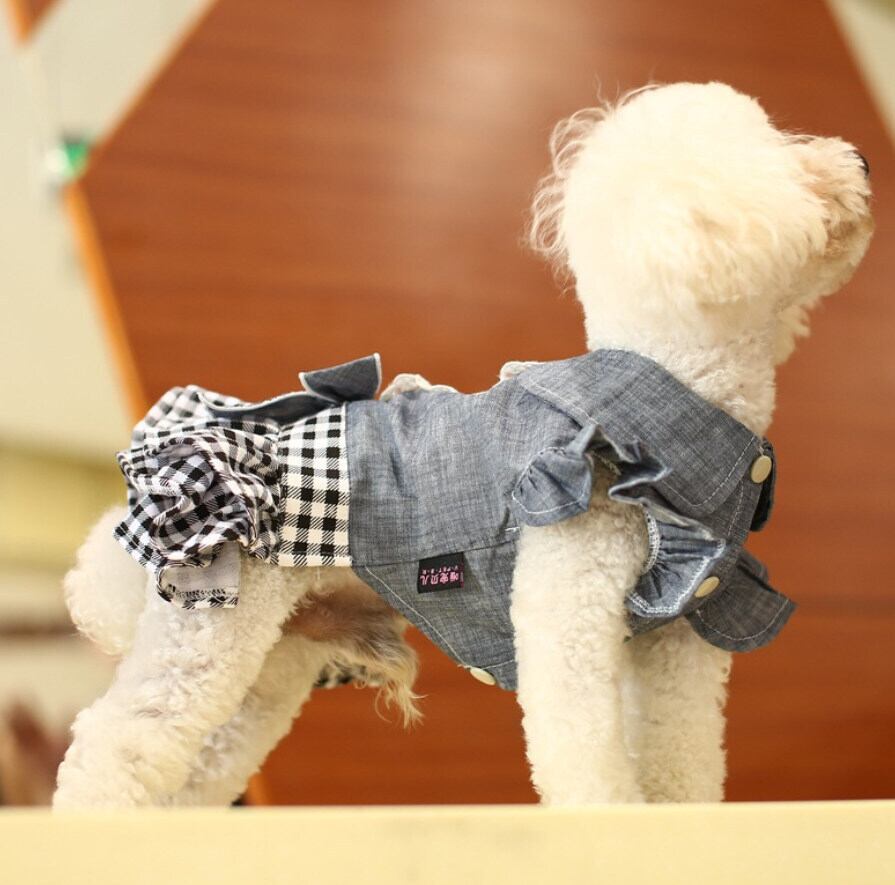 【即納品】デニム×ギンガムワンピース
