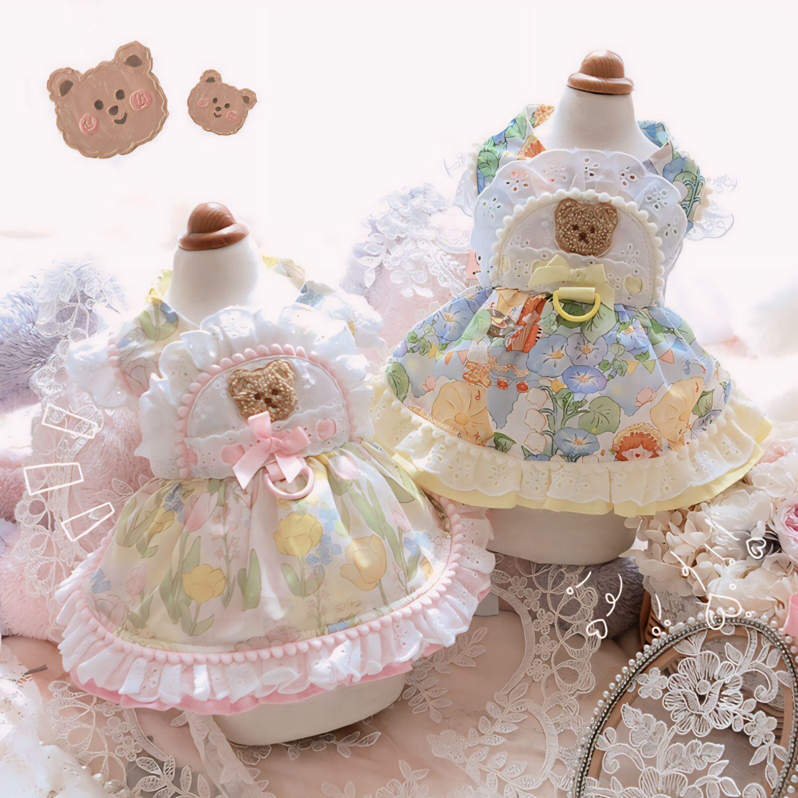 くまちゃんのモチーフとフリルが可愛らしい新作ドレスワンピースが入荷しました。