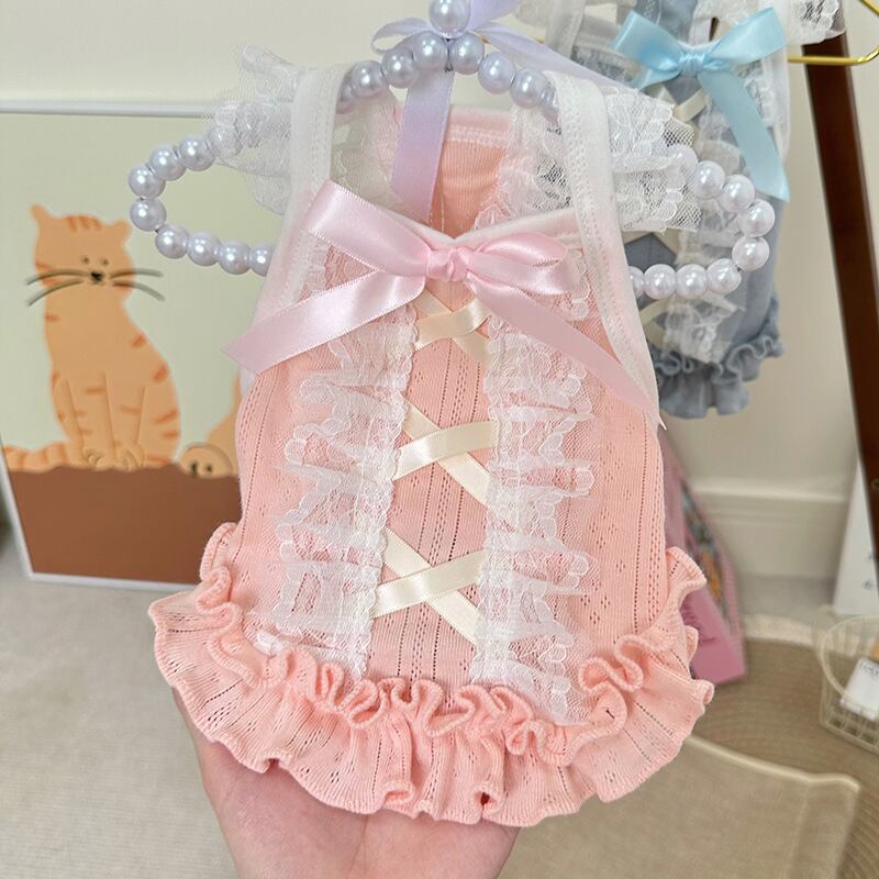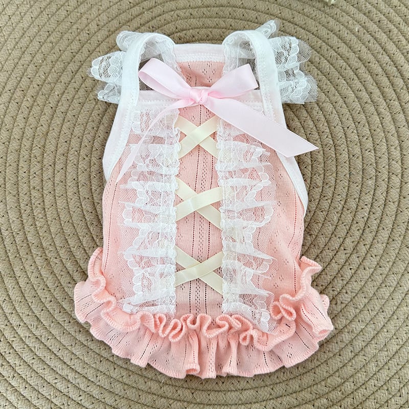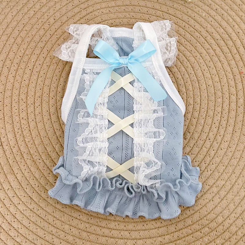 ブルーとピンクのパステルカラーにフリルとおリボンが印象的でとってもラブリーなアイテムです♡リブ素材なので伸縮性もあり、着やすいのもポイント◎