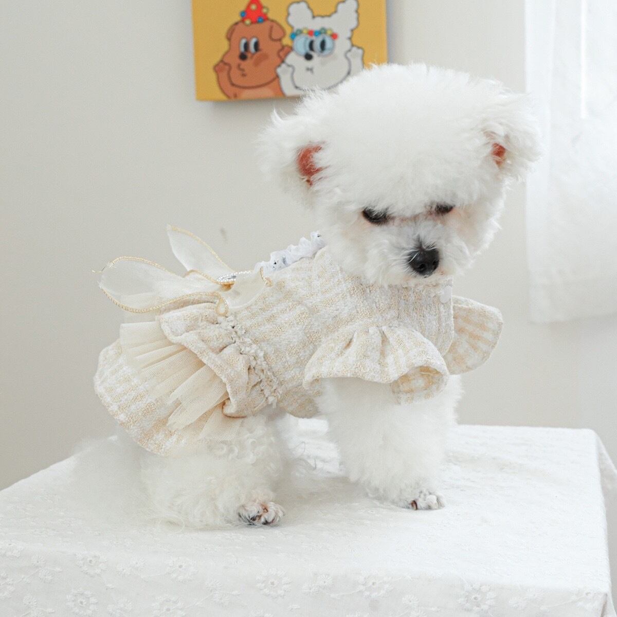 ホワイトではないので、白い毛色のわんちゃんから濃い毛色のわんちゃんまで毛色問わず可愛らしく着こなせるドレスです♬.*゚